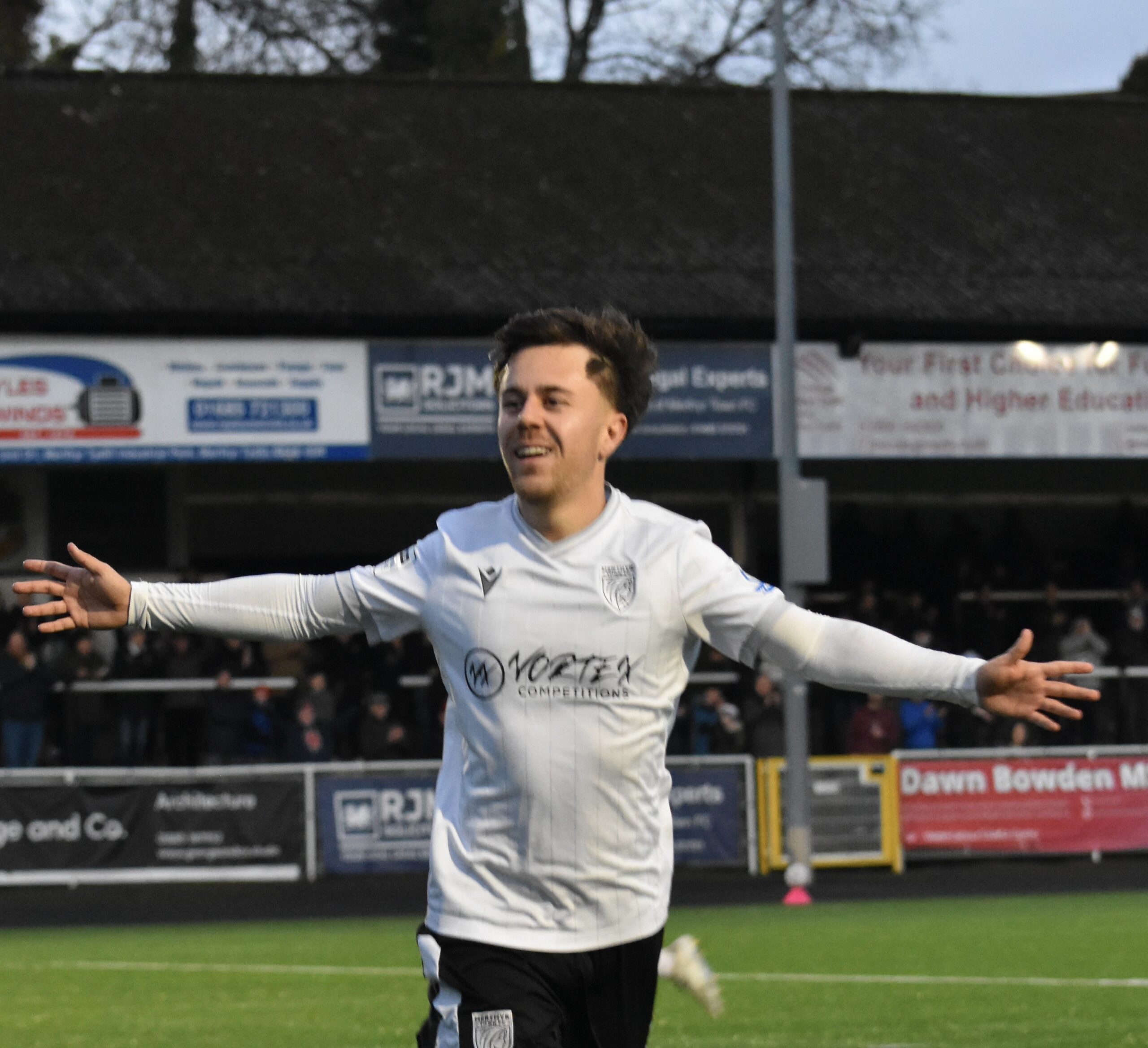 The deadlock was finally broken on 71 minutes with Smerdon at his marauding best down the left hand flank. He was able to square the ball across to Jarvis, whose neat step over allowed Twamley to wait for Whitehouse to challenge, drag the ball back before unleashing a screamer from the edge of the box into the top right hand corner. What a goal. Merthyr 1 – 0.
